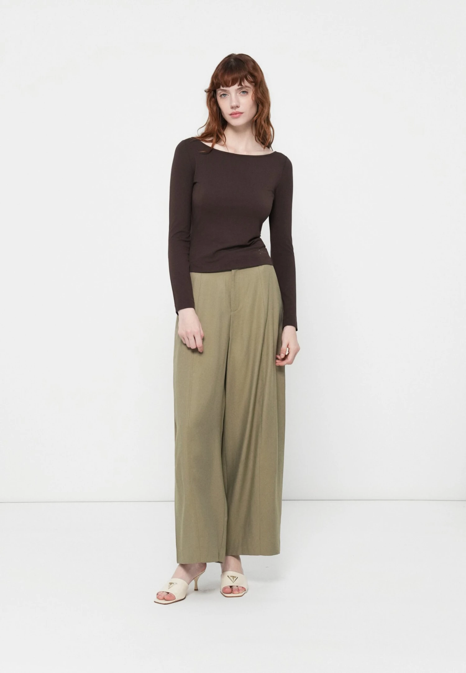 - Neckline: Boat neck