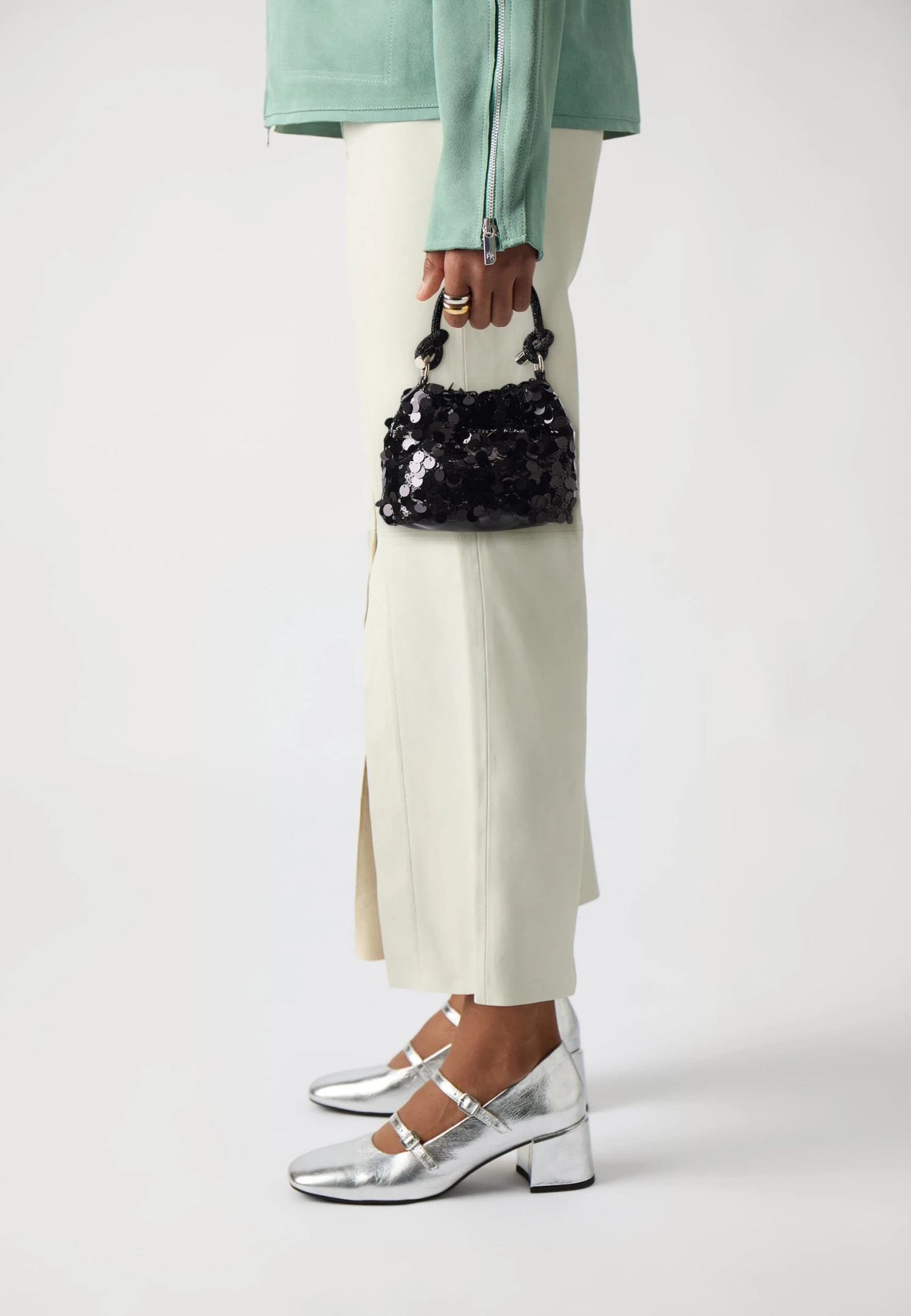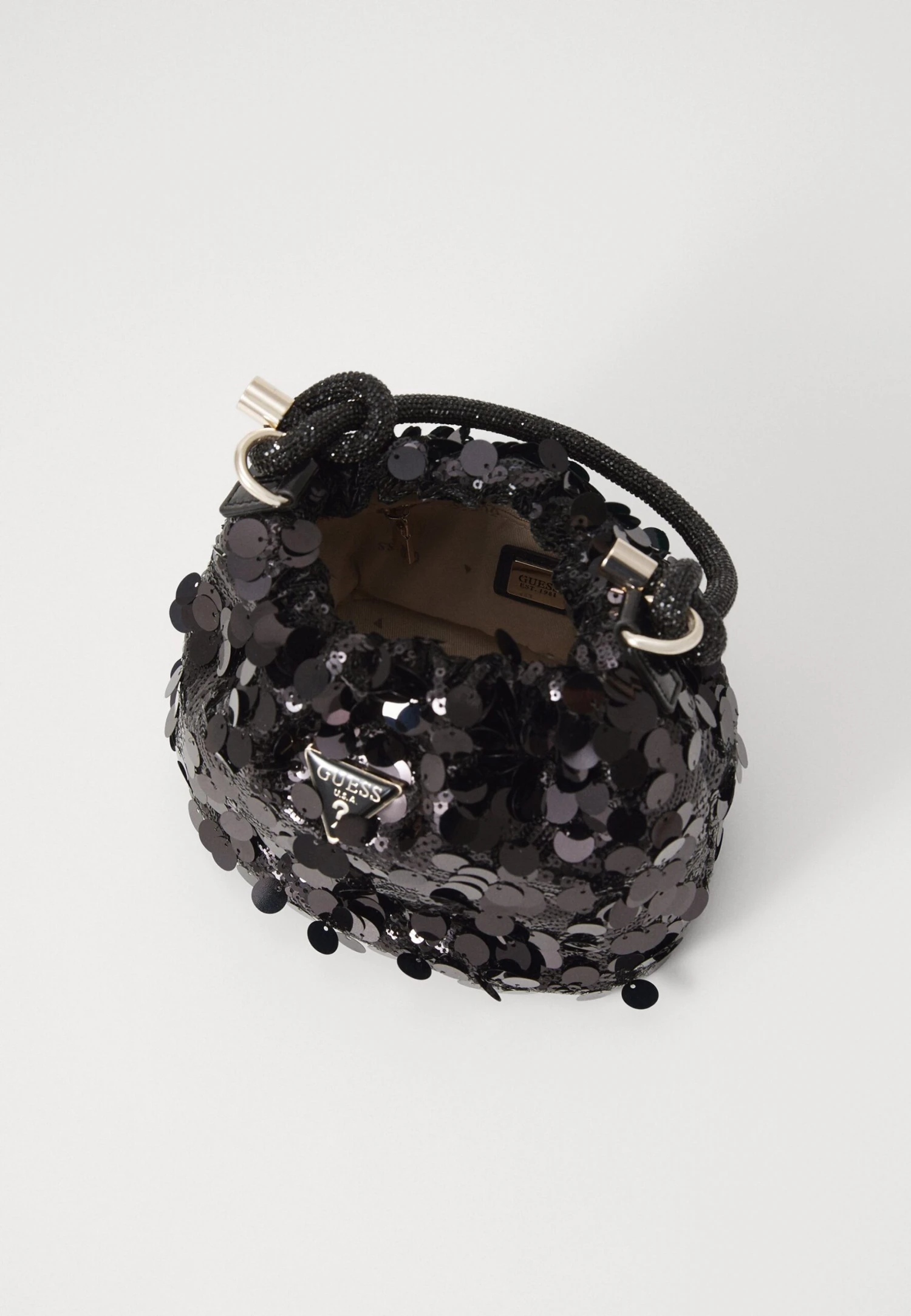 - Details: Sequins, carabiner, rhinestones