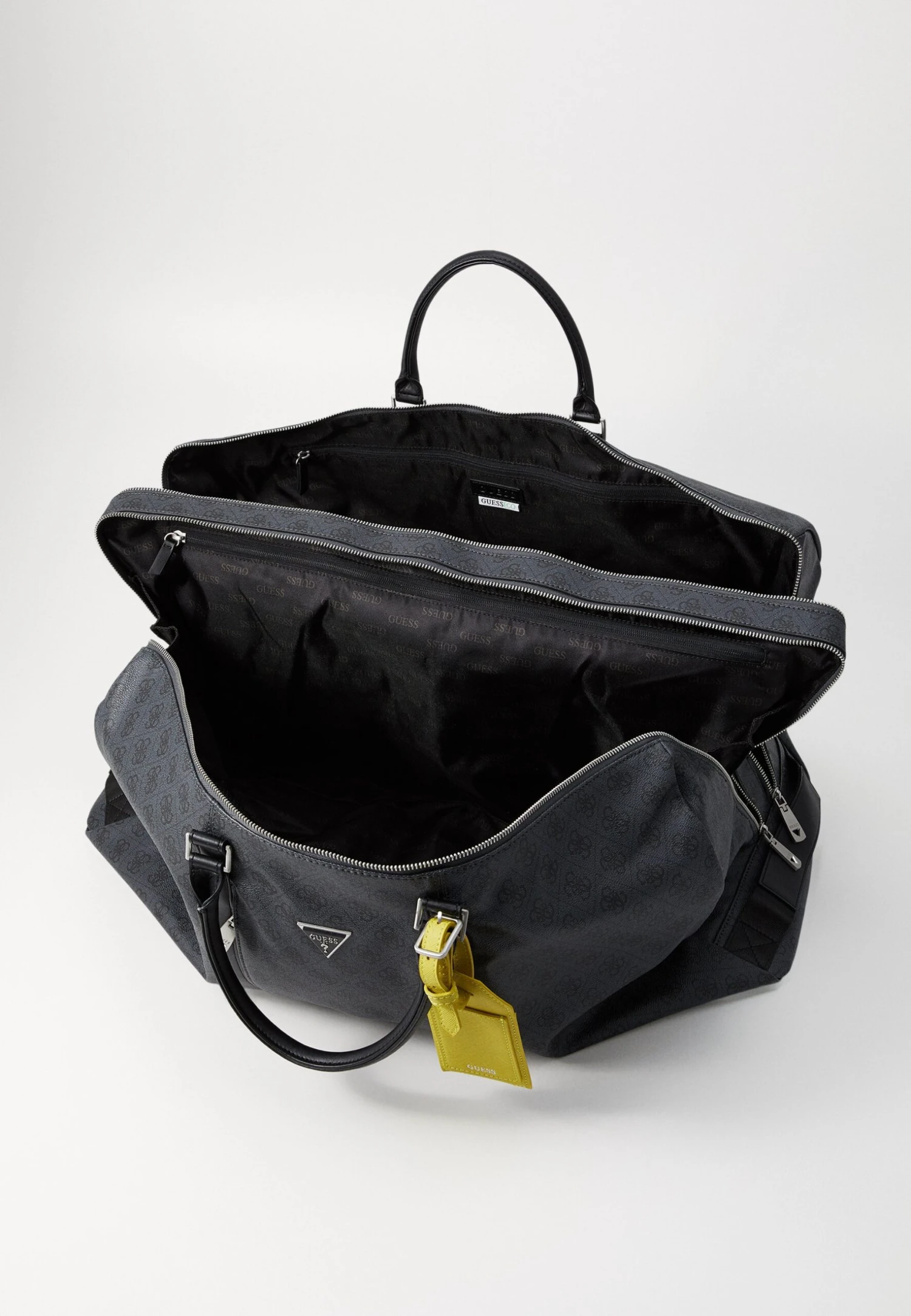 - Details: Two-way zip, separate pouch, buckle, trolley carrying system